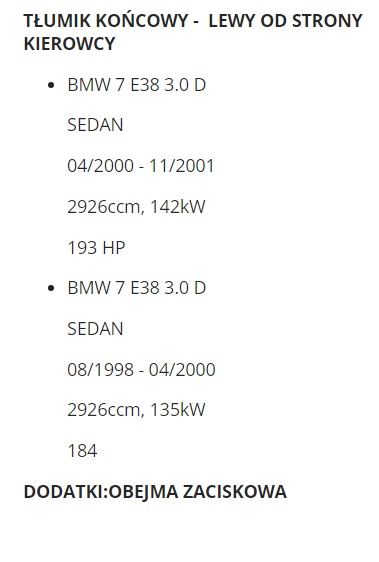 BMW 7 E38 3.0 D SEDAN 1998-2001 TŁUMIK KOŃCOWY LEWY