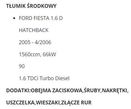 Ford Fiesta 1.6 TDCi Turbo Diesel Hatchback 2005-2006 Tłumik Środkowy