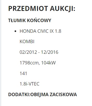 HONDA CIVIC IX 1.8i VTEC KOMBI 2012-2016 TŁUMIK KOŃCOWY